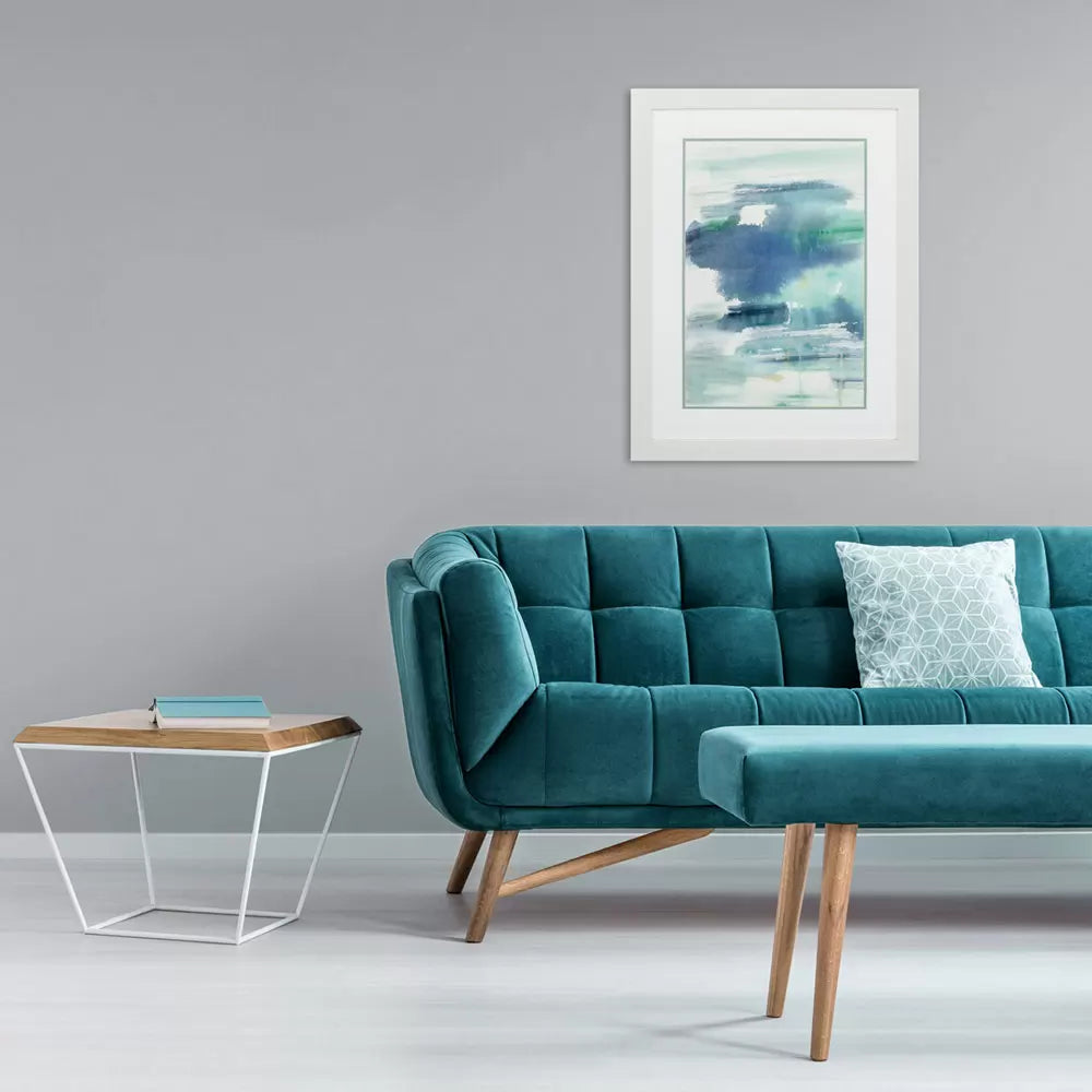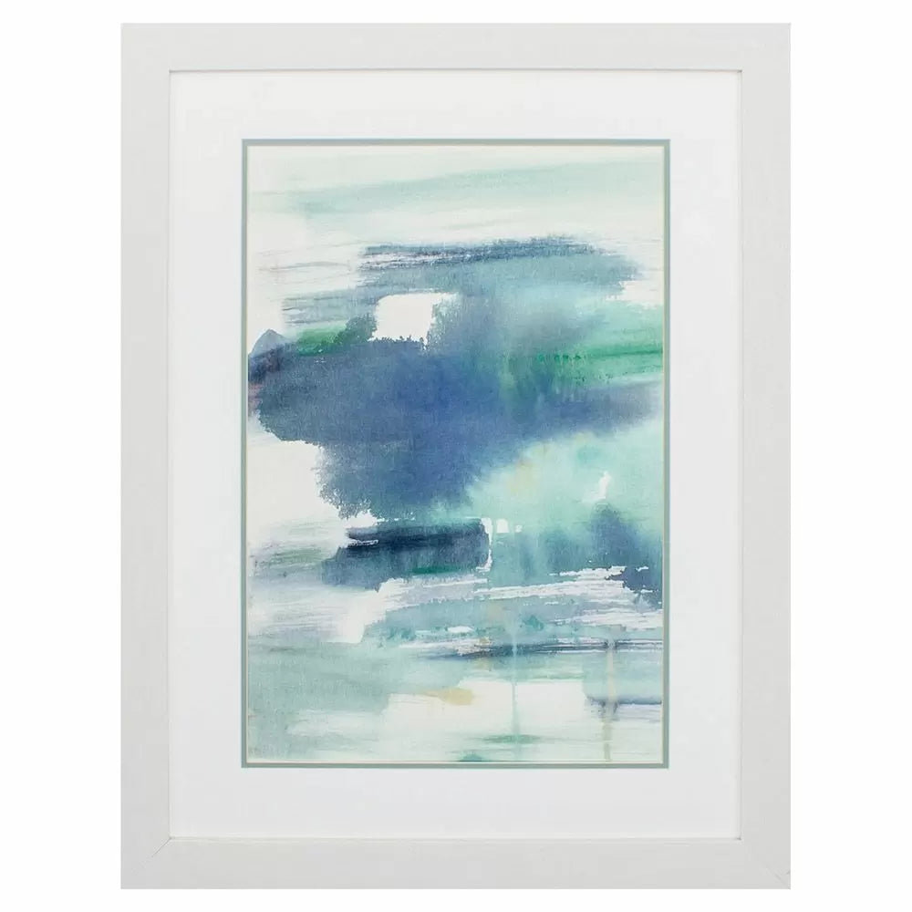 Contemporary abstract image that has been double matted and finished under glass with a white wash frame.
