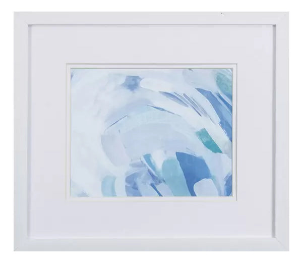 A set of abstract images that come double matted and framed under glass in a white molding.
