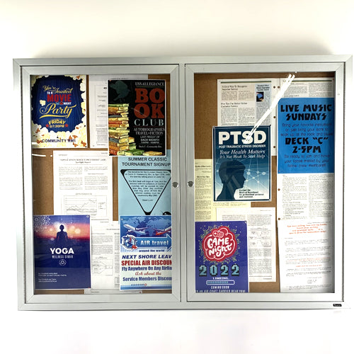 BULLETIN BOARD, GLASS ENCLOSED, DOUBLE