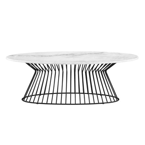 COFFEE TABLE, WHITE MARBLE TOP W/BLACK METAL BASE