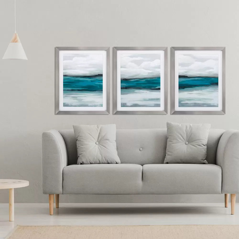 Set of three abstract images that have been double matted and framed under glass in an elegant contemporary moulding.