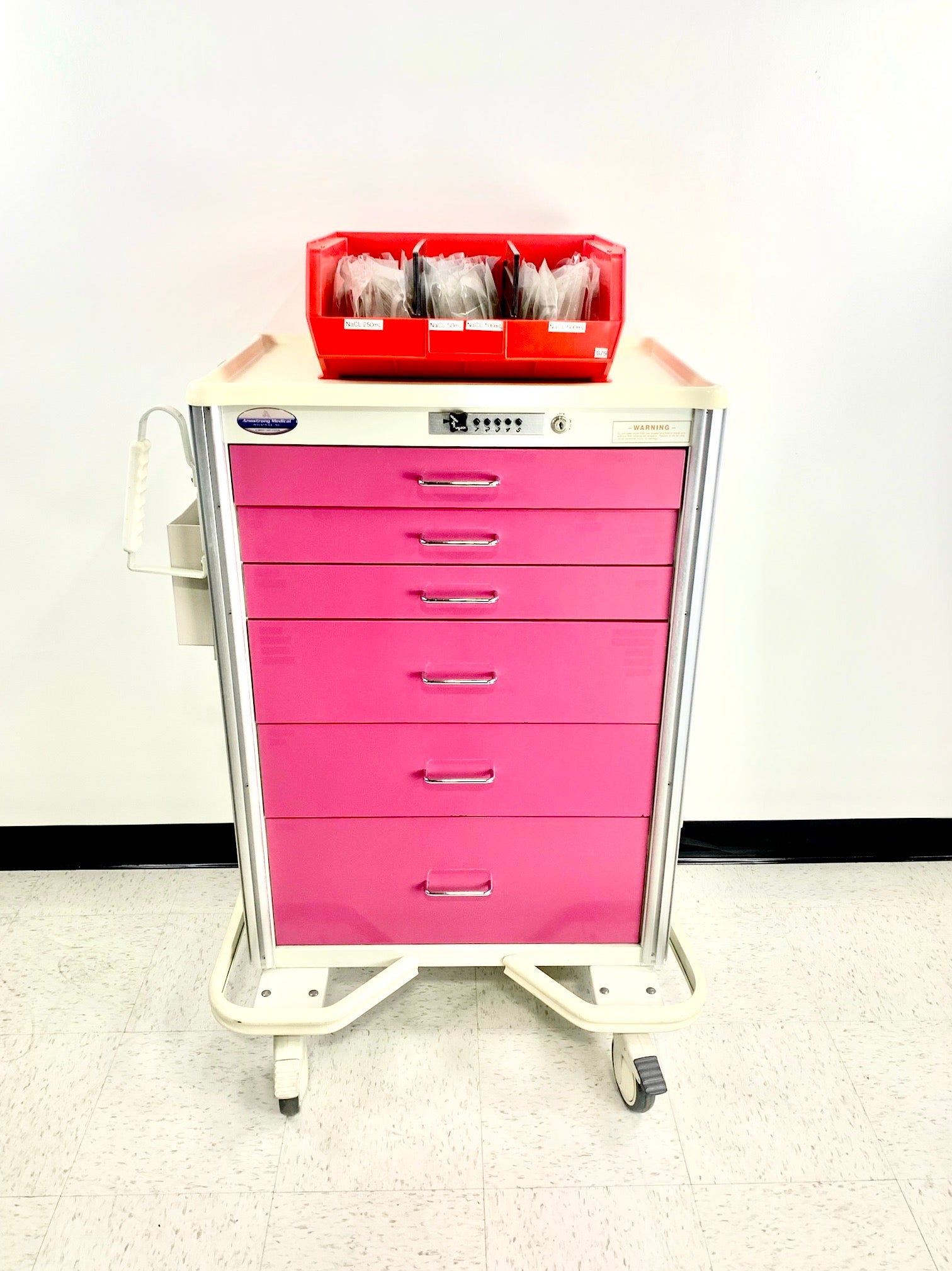 CRASH CART, A-ARMSTRONG WITH PINK DRAWERS