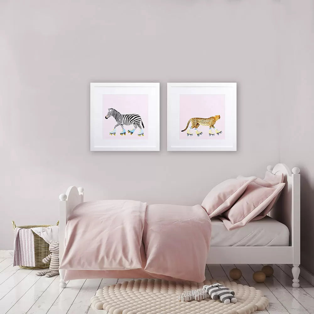 One out of two youth animal prints that are accentuated with a white matte and paired with a matte white frame.
