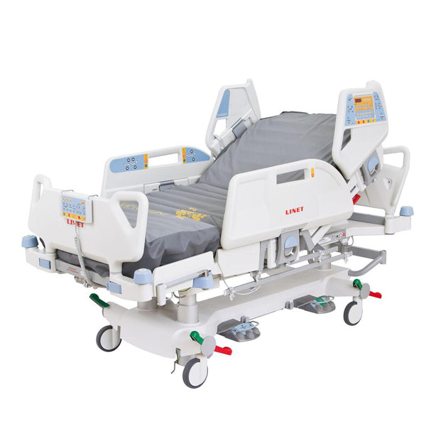 The Linet Hospital Bed is designed to provide a safe and comfortable environment to care for patients and staff by providing a full range of supporting clinical benefits. It provides essential support to vital functions and offers excellent conditions for staff to minimize risks with patient care. This Linet Hospital Bed was designed to address the specific clinical needs of critically ill patients and offers the best solutions to minimize risks associated with patient care.