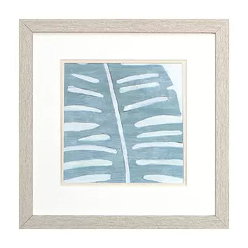 One out of a set of nine palm prints that are double matted, framed under glass and paired with a textured light wood tone frame.