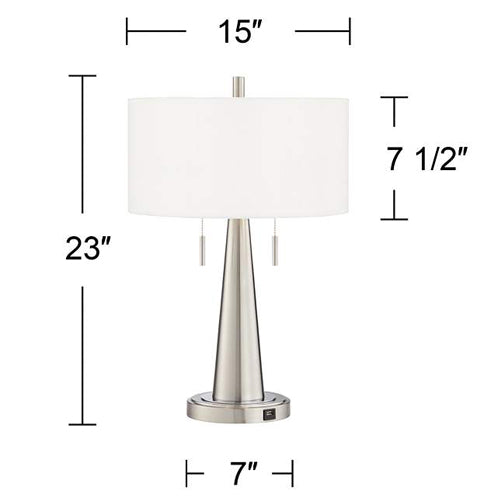 TABLE LAMP, Brushed Nickel w/ Grey Shade